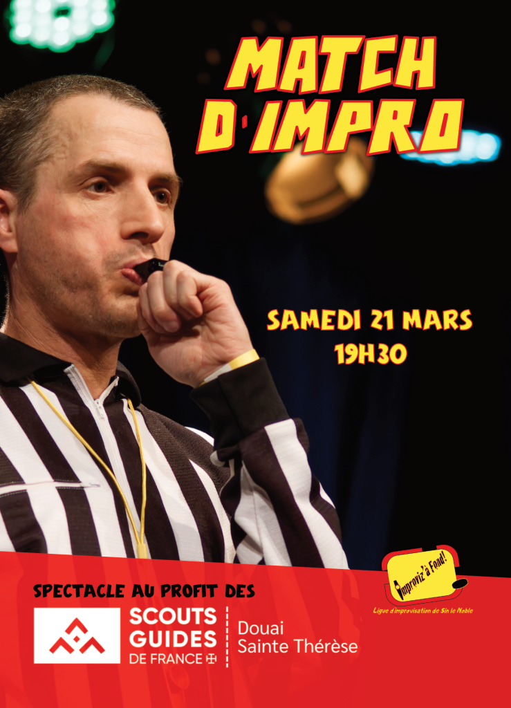 Nous sommes très heureux de vous proposer ce match d’improvisation dont les bénéfices seront reversés aux Scouts et Guides de France de Douai, afin de financer les projets à venir pour les jeunes scouts.